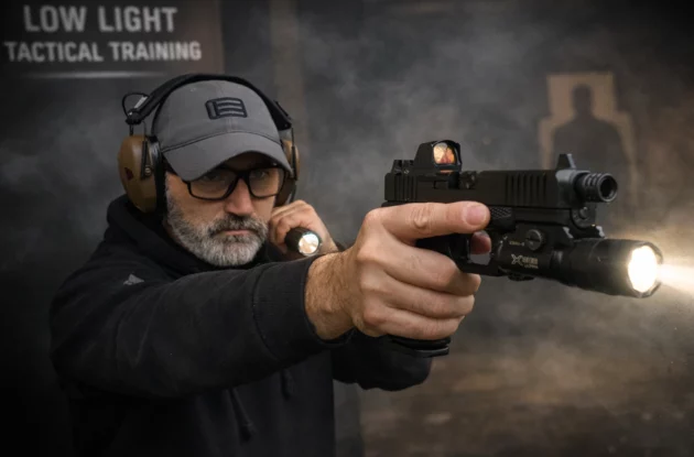 Le stage de tir low light est conçu pour les professionnels souhaitant maîtriser les tactiques d’emploi d’une lampe à main ainsi que les techniques de tir en faible luminosité à l’arme d’épaule et à l’arme de poing. La majorité des situations réelles d’engagement se produisent dans des conditions de visibilité réduite : nuit, intérieur sombre ou éclairage dégradé.